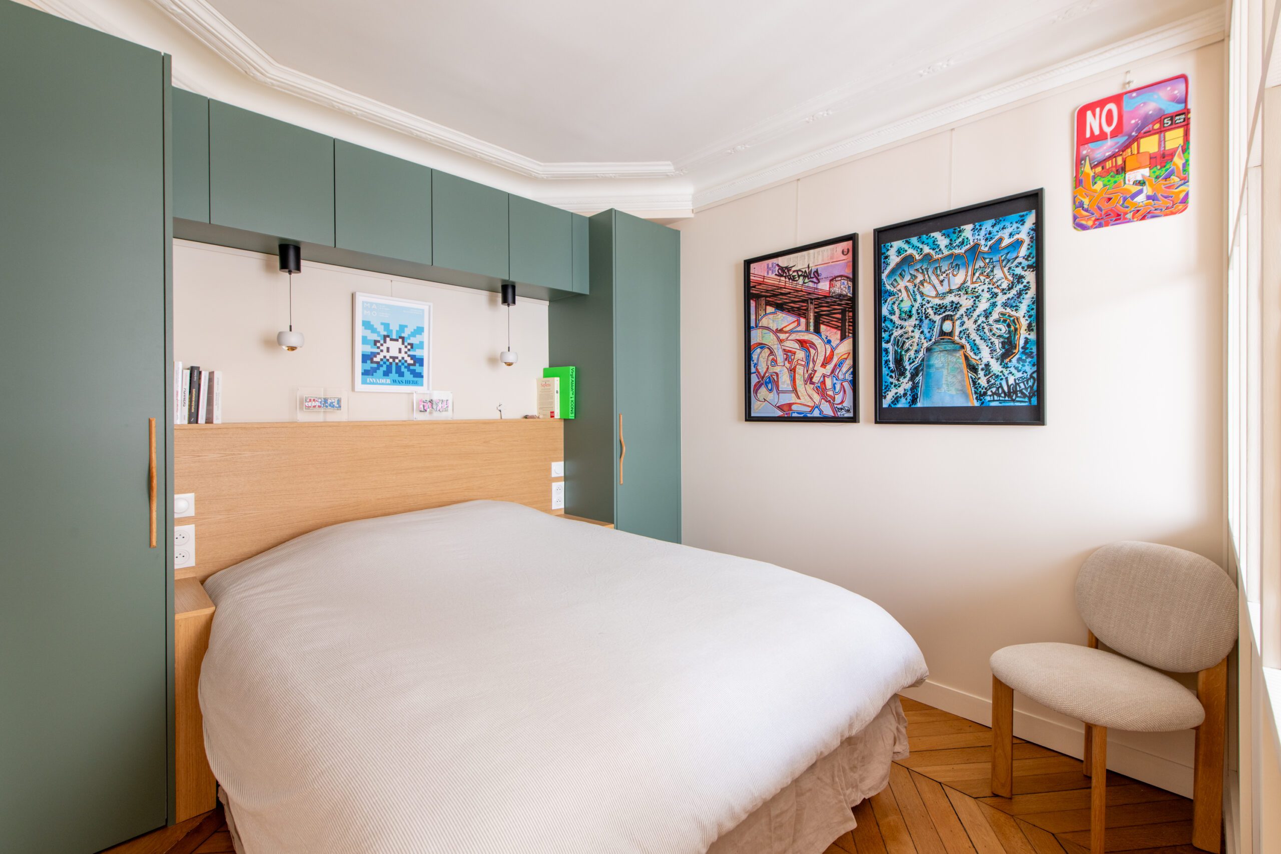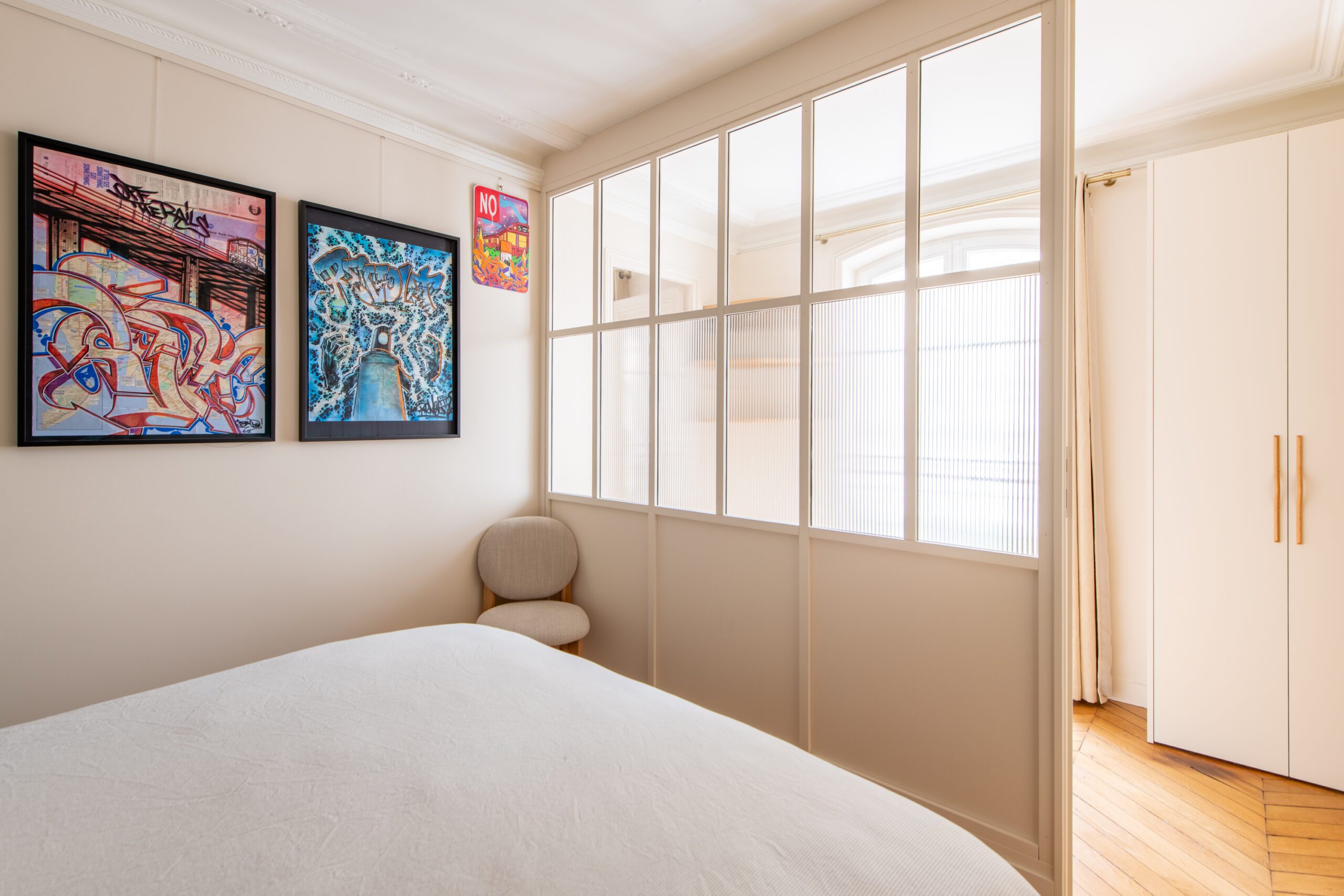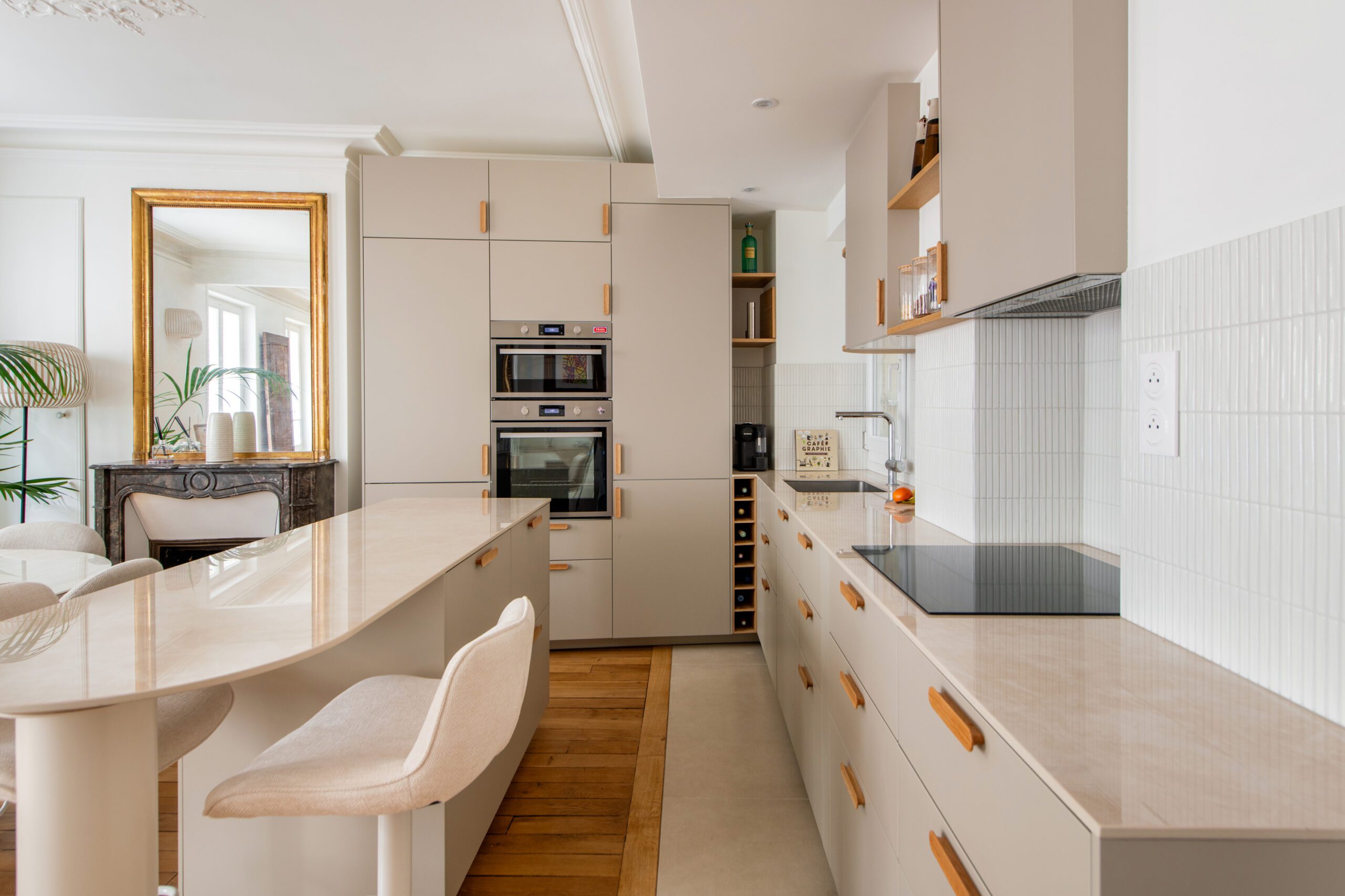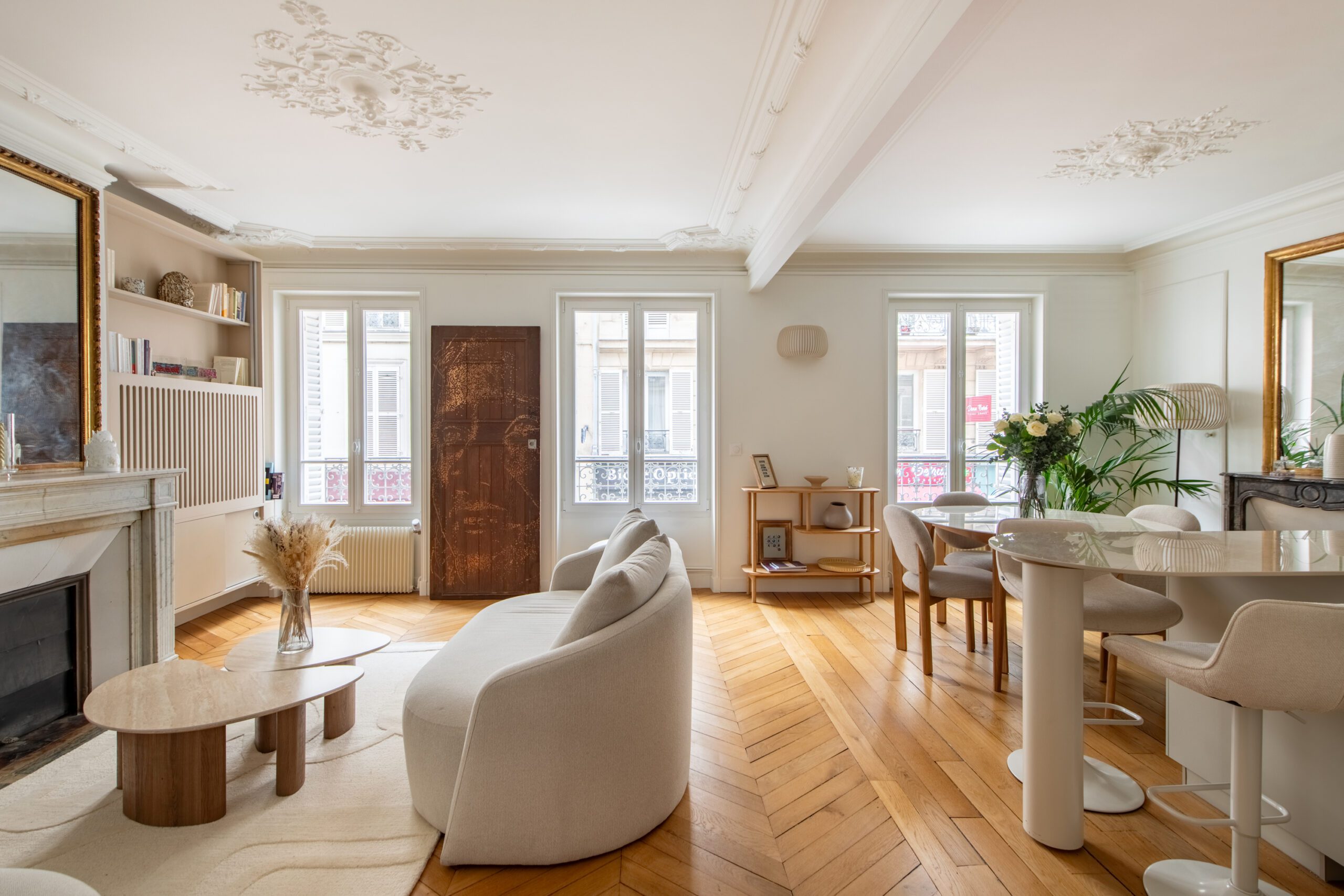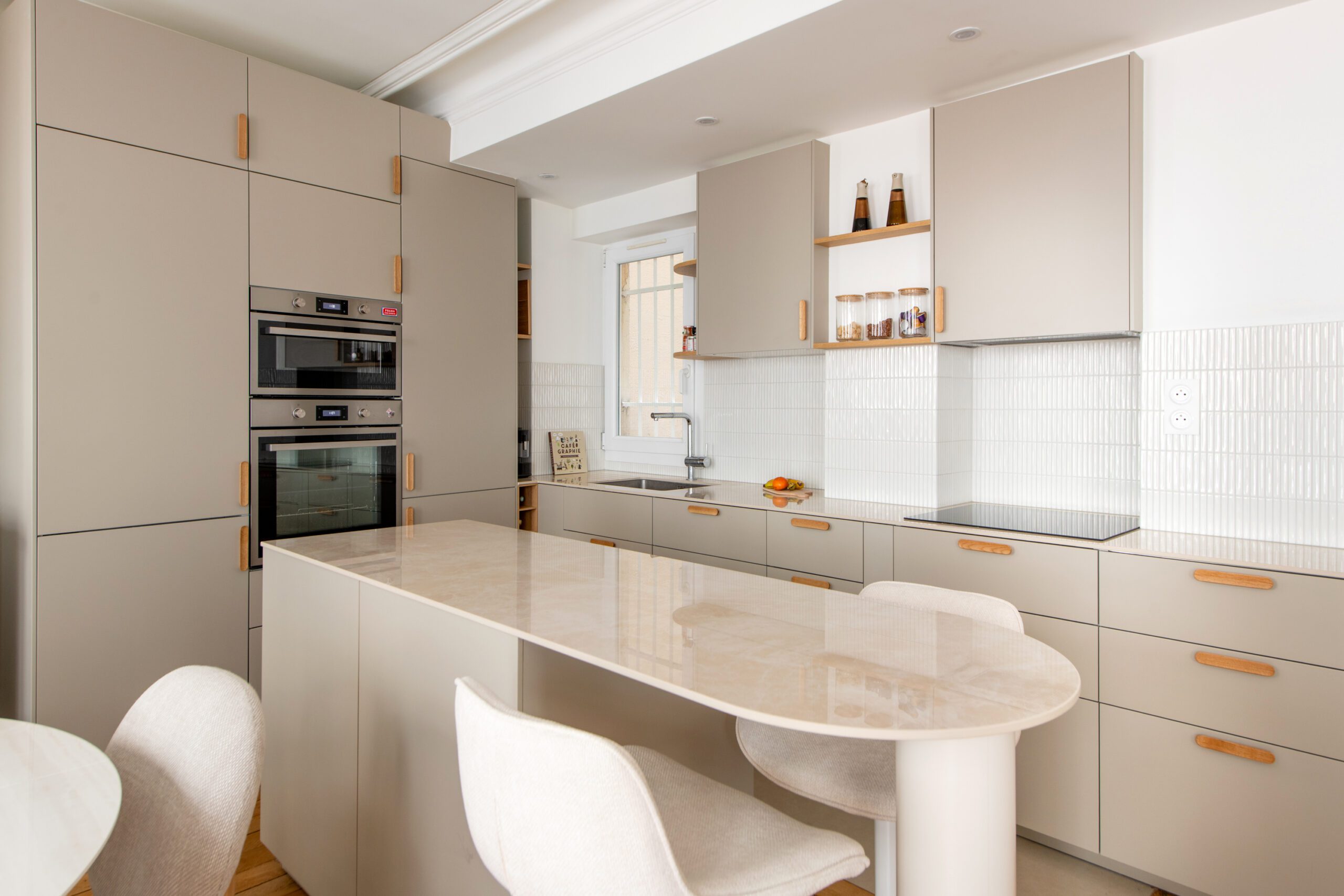 L’espace de cet appartement doit être repensé afin de créer (i) un séjour avec cuisine ouverte intégrant une table dinatoire extensible et un coin bar, ainsi que (ii) deux vraies chambres avec des rangements, dont l’une avec un coin bureau, (iii) tout en conservant la salle de bain avec douche et baignoire, le tout dans des tons neutres et intemporels